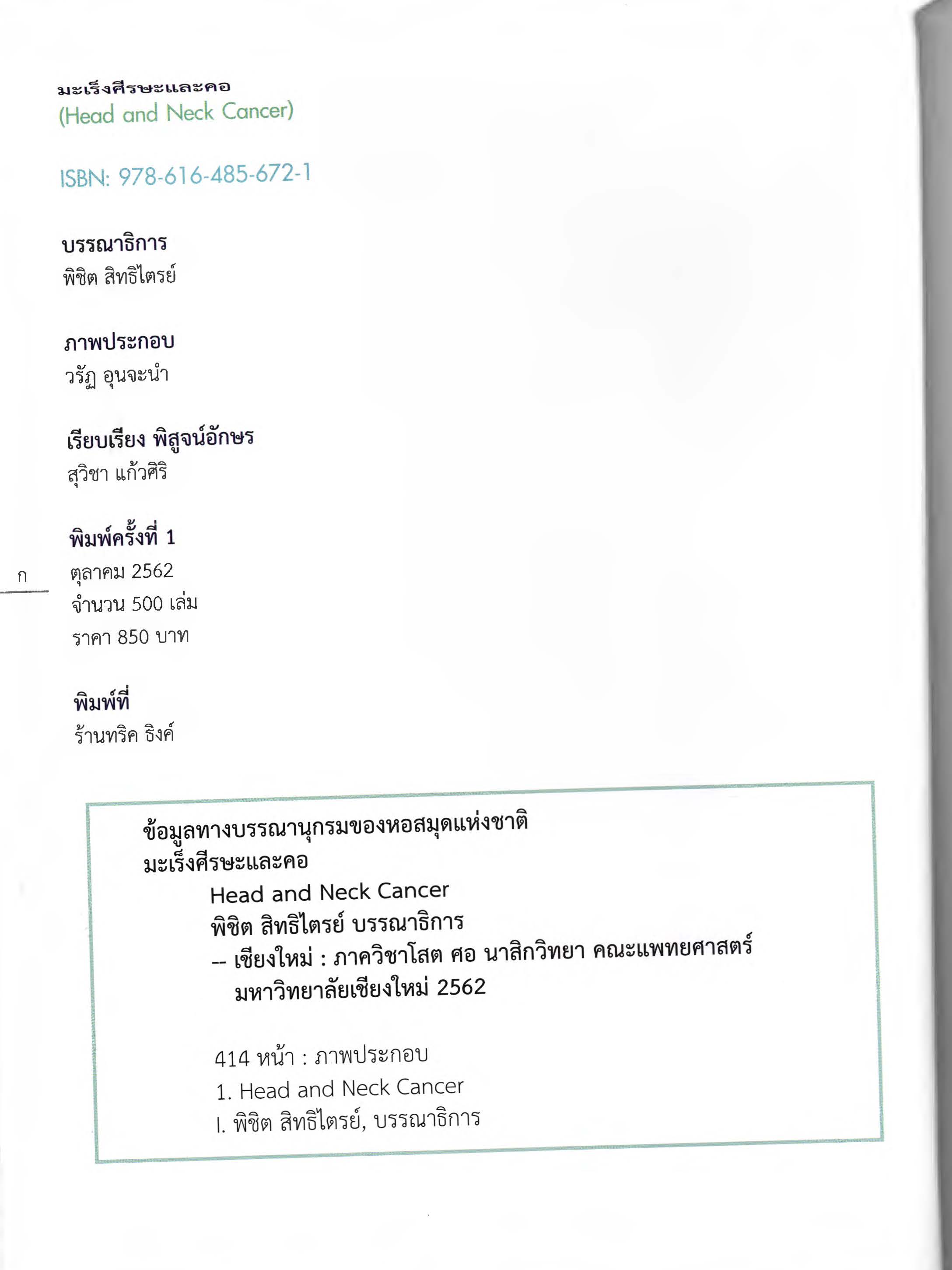 สำนักพิมพ์: ภาควิชาโสต ศอ นาสิกวิทยา คณะแพทยศาสตร์ มหาวิทยาลัยเชียงใหม่