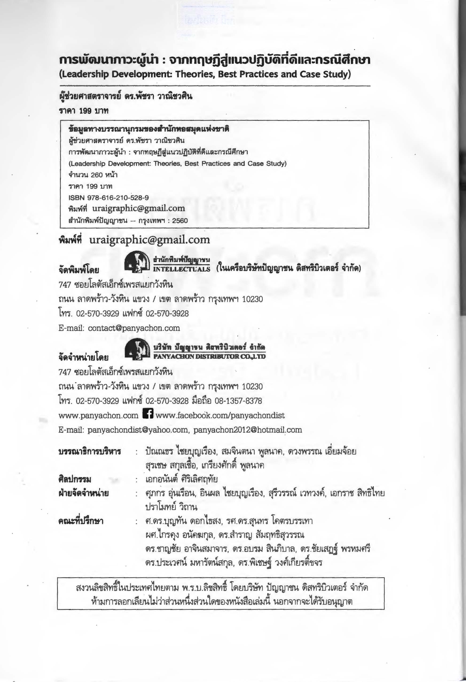 การพัฒนาภาวะผู้นำ : จากทฤษฎีสู่แนวปฏิบัติที่ดีและกรณีศึกษา.