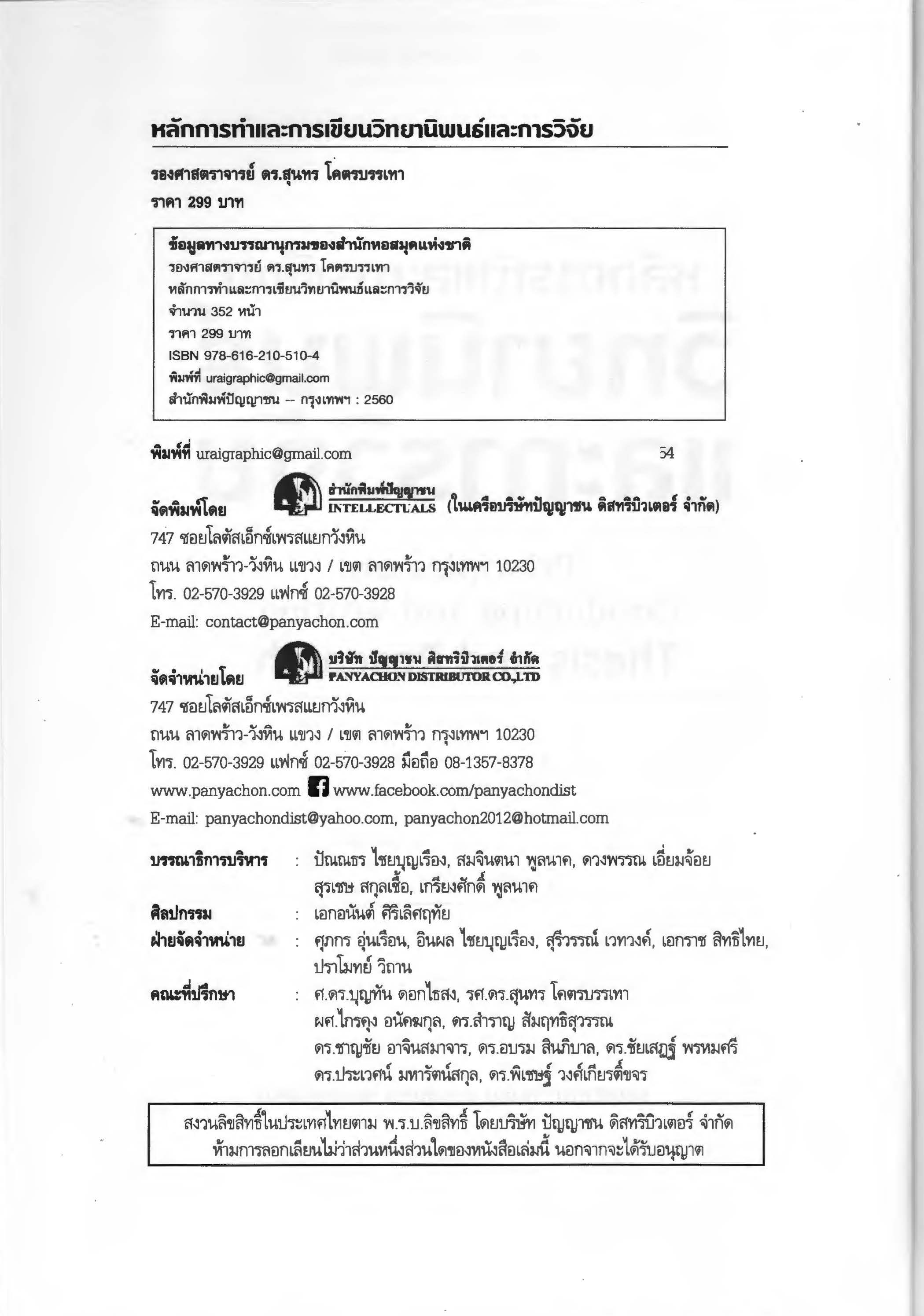 หลักการทำและการเขียนวิทยานิพนธ์และการวิจัย.