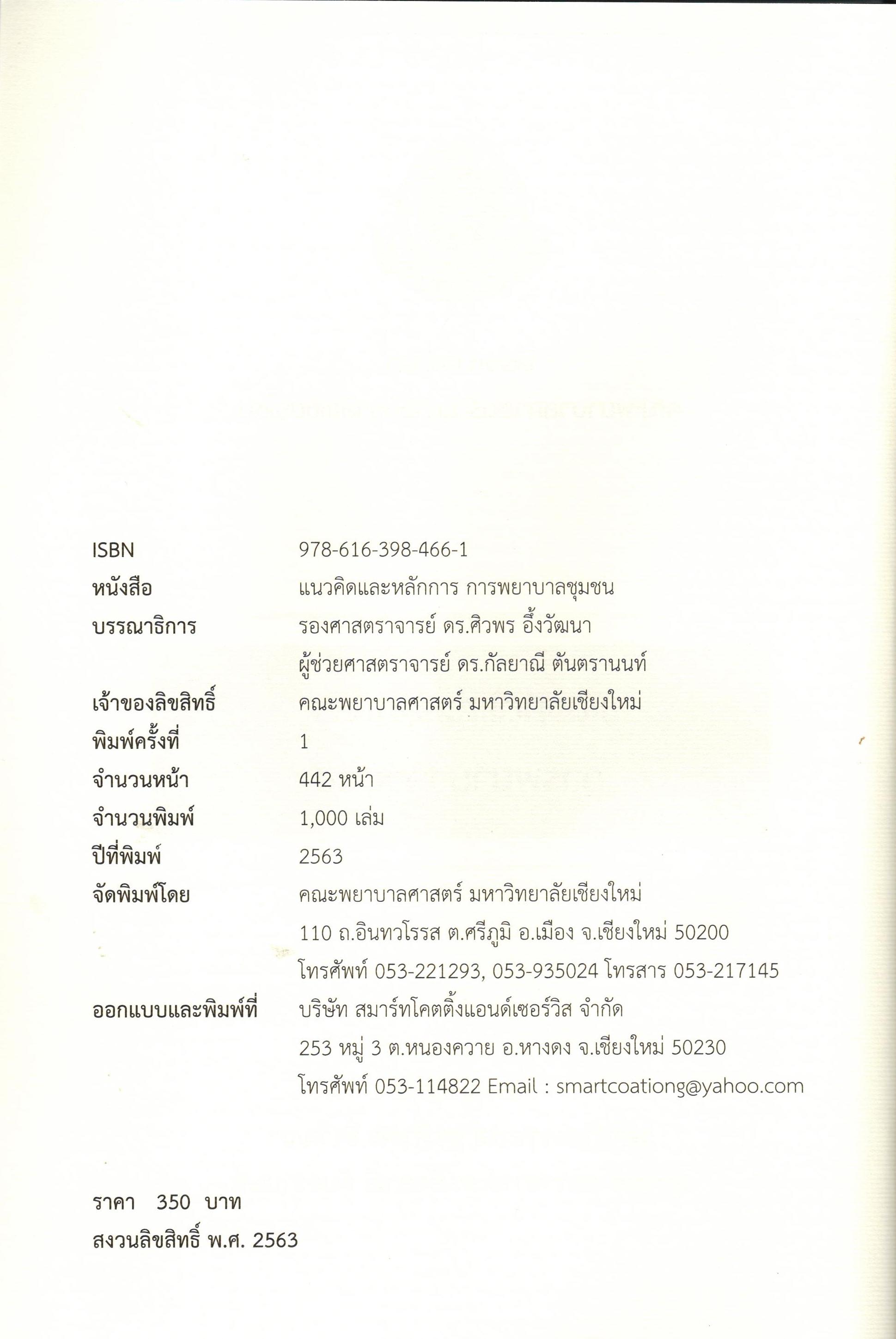 สำนักพิมพ์: คณะพยาบาลศาสตร์ มหาวิทยาลัยเชียงใหม่