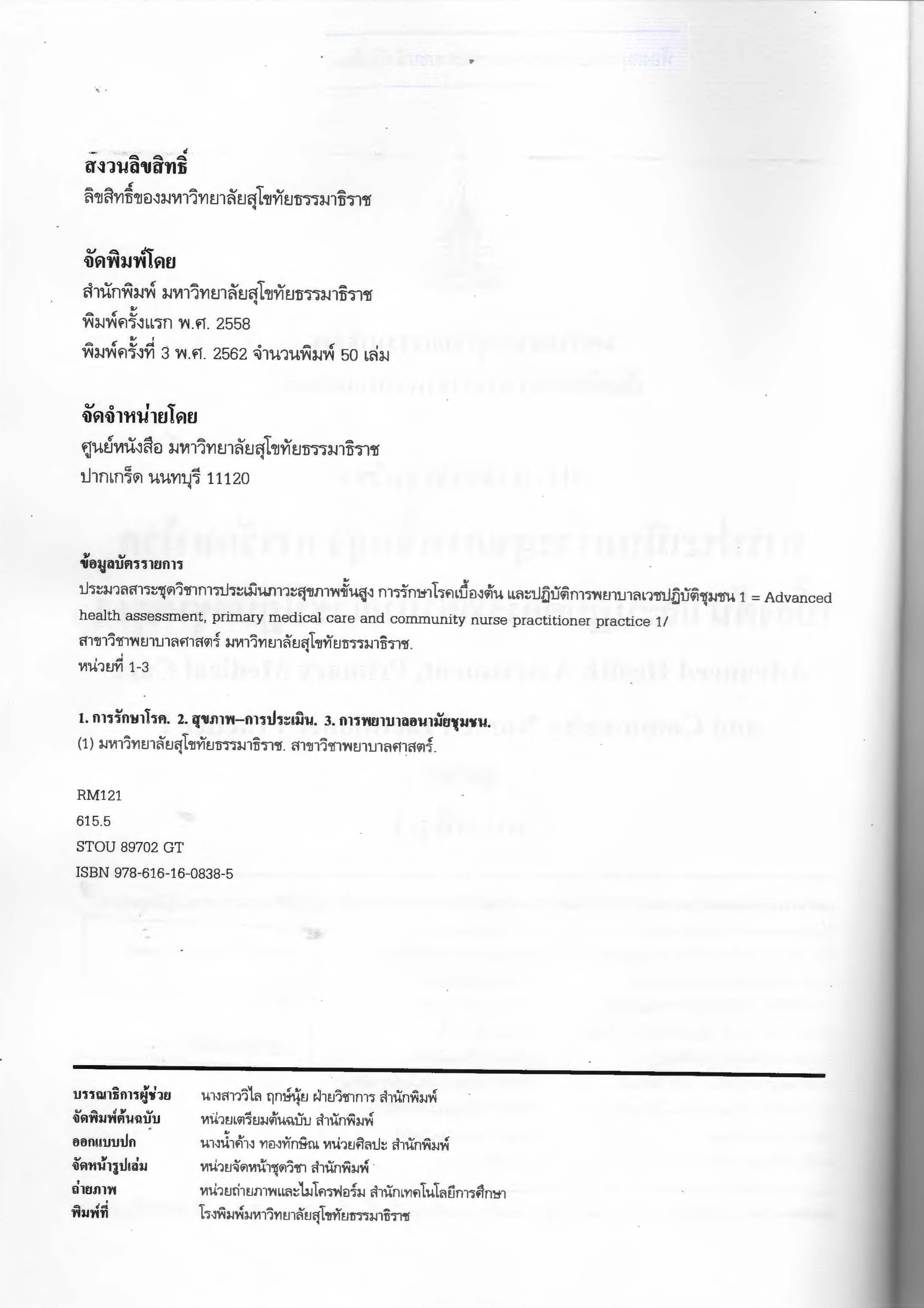 สำนักพิมพ์: สาขาวิชาพยาบาลศาสตร์ มหาวิทยาลัยสุโขทัยธรรมาธิราช