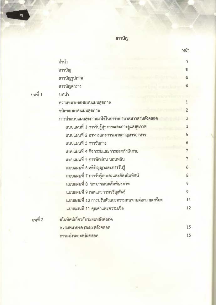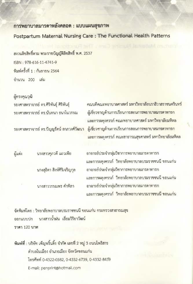 การพยาบาลมารดาหลังคลอด : แบบแผนสุขภาพ.