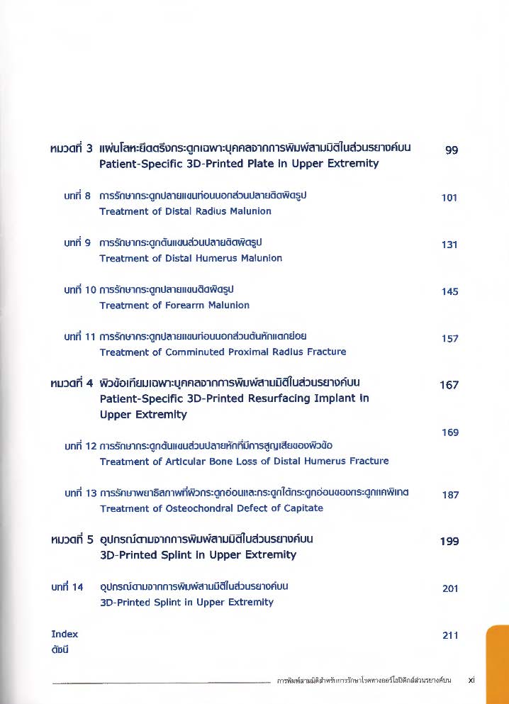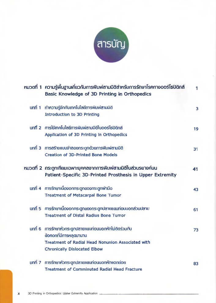 ตำราการพิมพ์สามมิติ สำหรับการรักษาโรคทางออร์โธปิดิกส์ส่วนรยางค์บน = Textbook of 3D printing in orthopedics: upper extremity application.