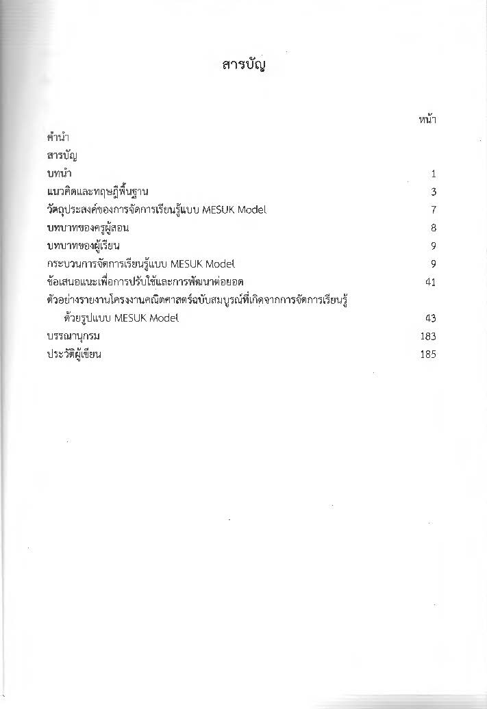 Mesuk Model (มีสุขโมเดล) : รูปแบบการจัดการเรียนรู้ตามแนวทางสะเต็มศึกษา เพื่อพัฒนาทักษะและกระบวนการทางคณิตศาสตร์สู่วิถีชีวิตประจำวันอย่างมีความสุข.