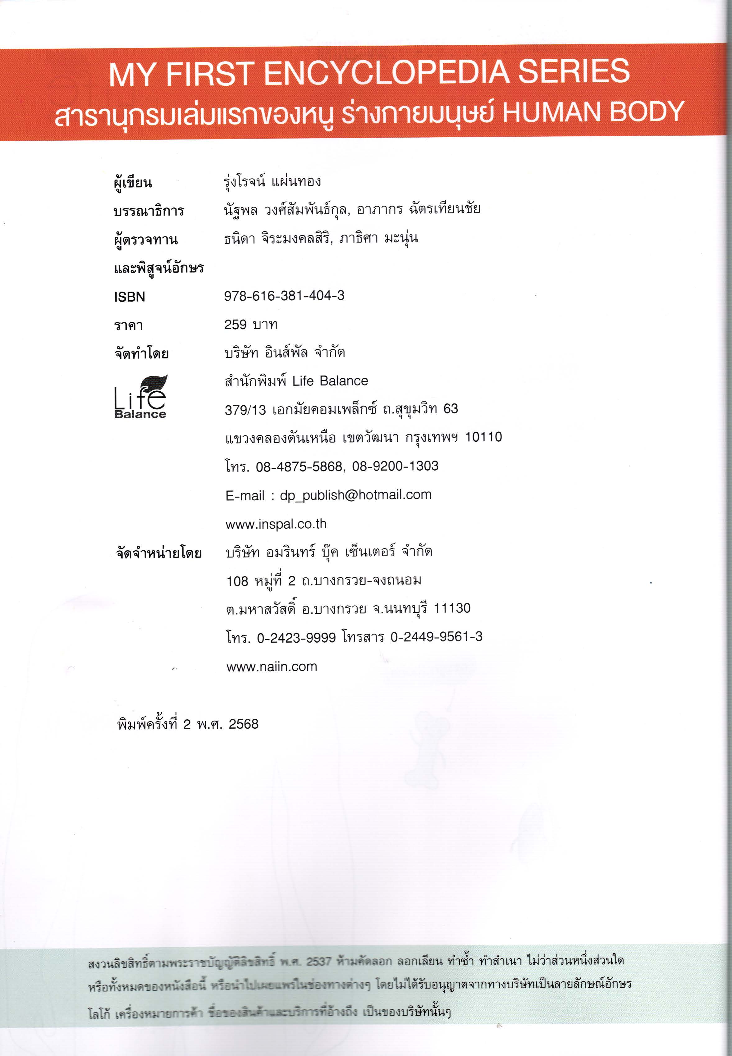 ร่างกายมนุษย์ = Human body : My first encyclopedia series