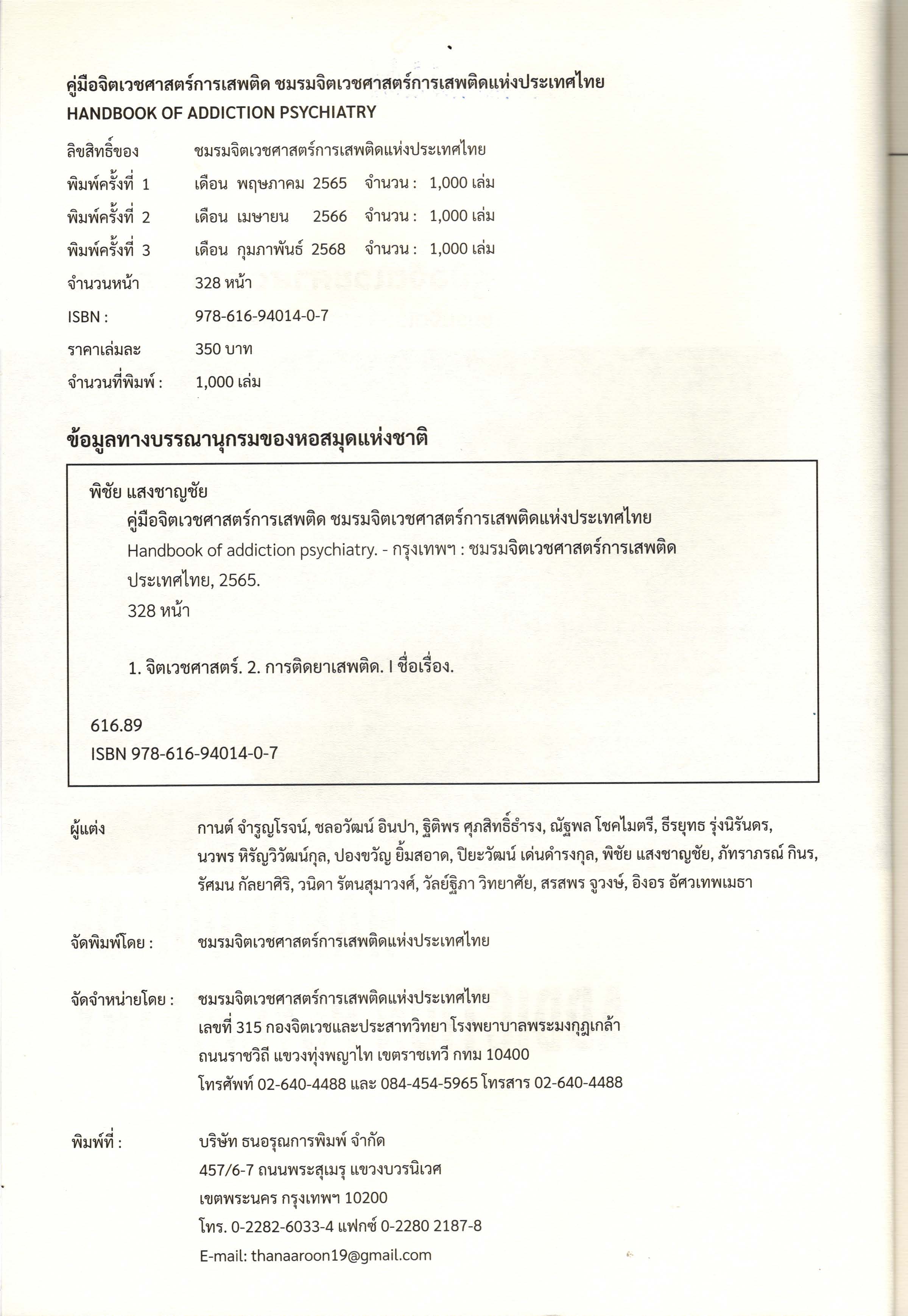 สำนักพิมพ์: ชมรมจิตเวชศาสตร์การเสพติดประเทศไทย