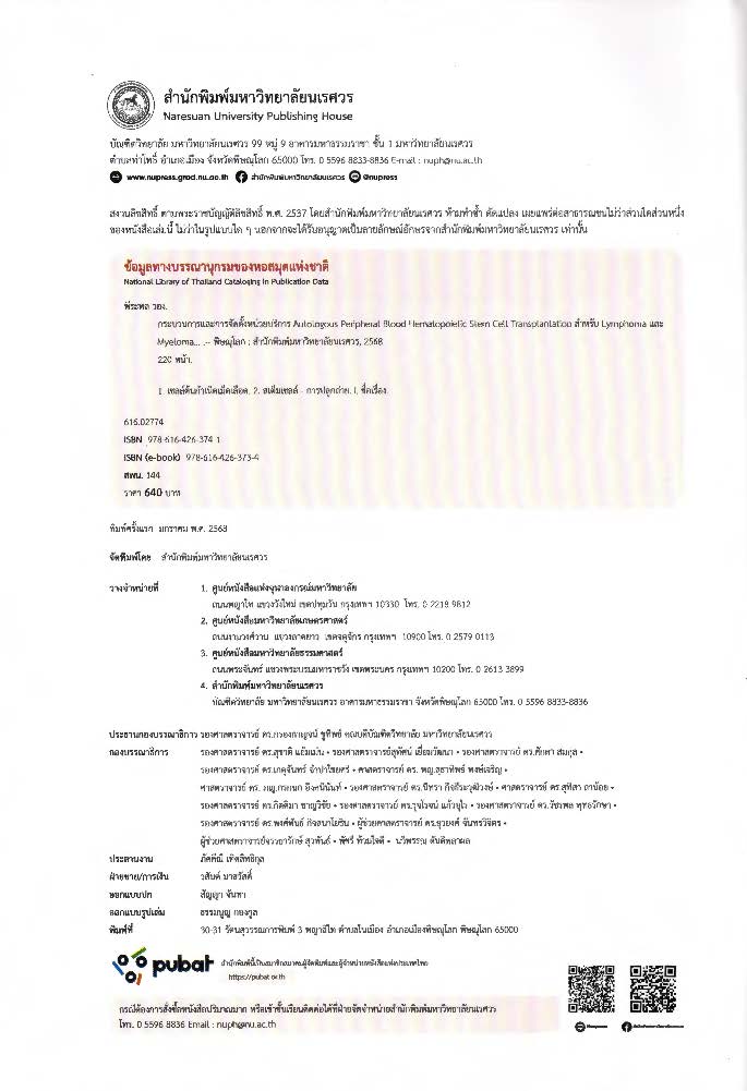 กระบวนการและการจัดตั้งหน่วยบริการ Autologous peripheral blood hematopoietic stem cell transplantation สำหรับ lymphoma และ myeloma.
