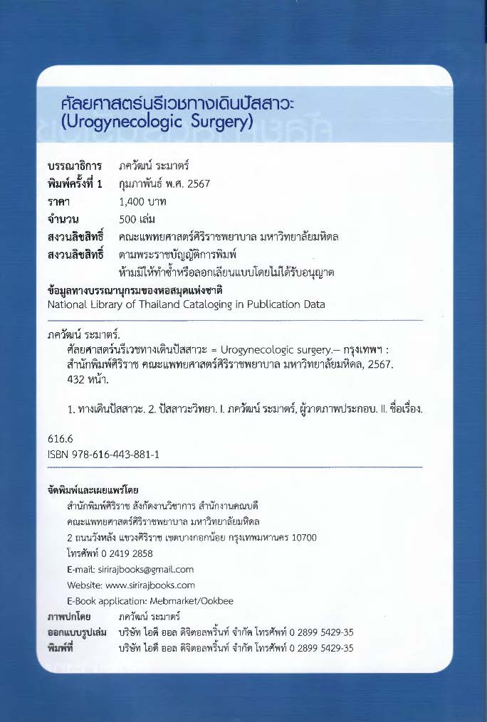 สำนักพิมพ์: สำนักพิมพ์ศิริราช คณะแพทยศาสตร์ศิริราชพยาบาล มหาวิทยาลัยมหิดล