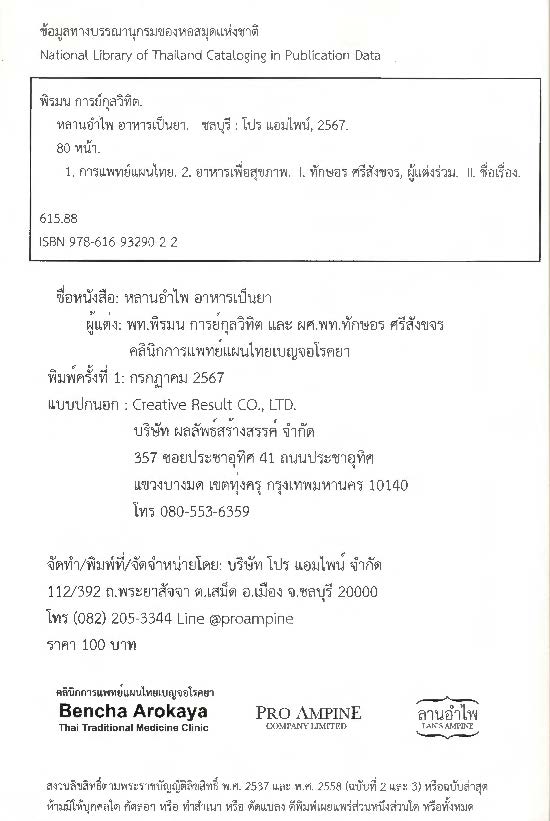 หลานอำไพ อาหารเป็นยา : เปิดสูตรอาหารไทย และรสยาการแพทย์แผนไทยในการดูแลสุขภาพ.