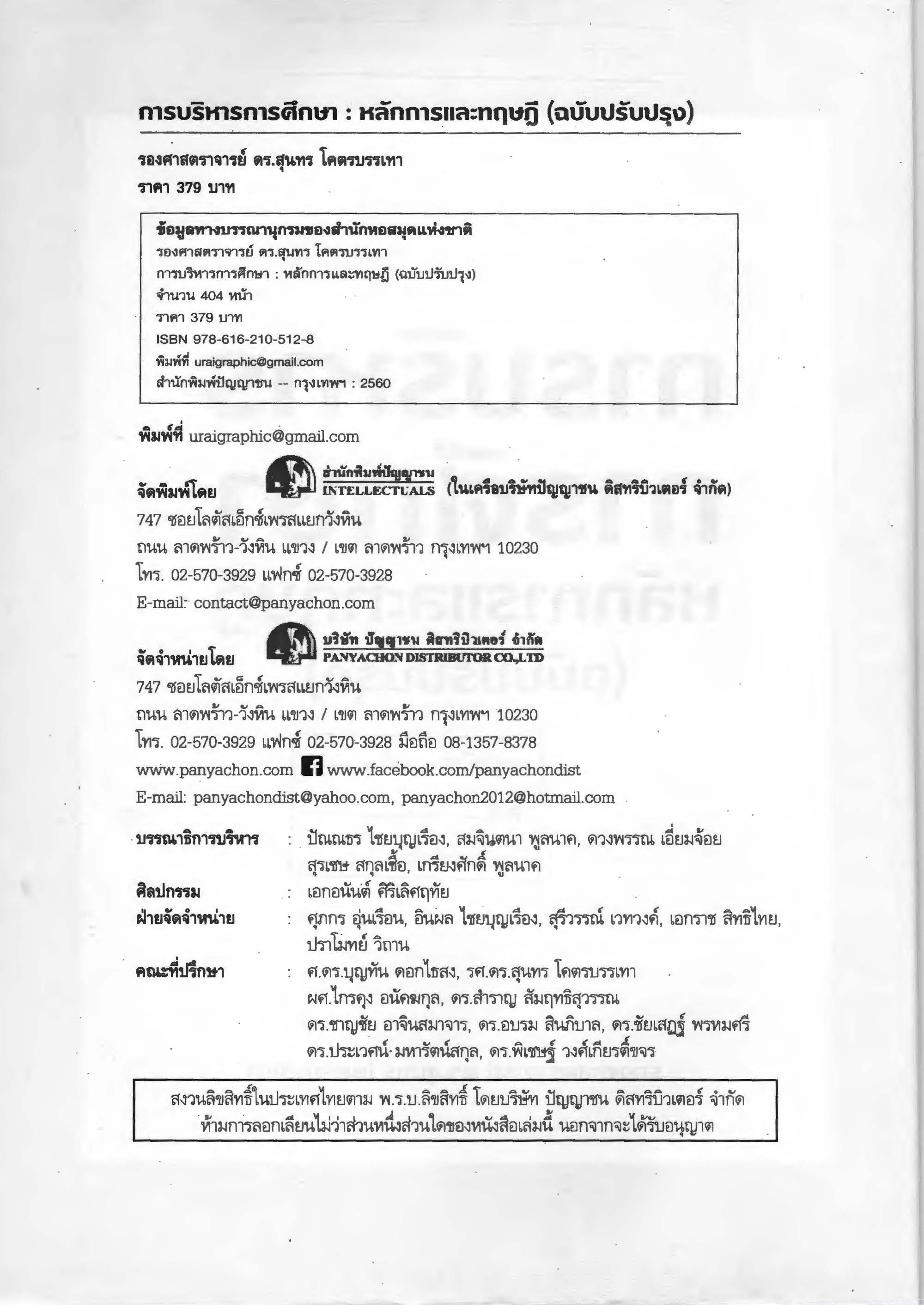 การบริหารการศึกษา : หลักการและทฤษฎี (ฉบับปรับปรุง).