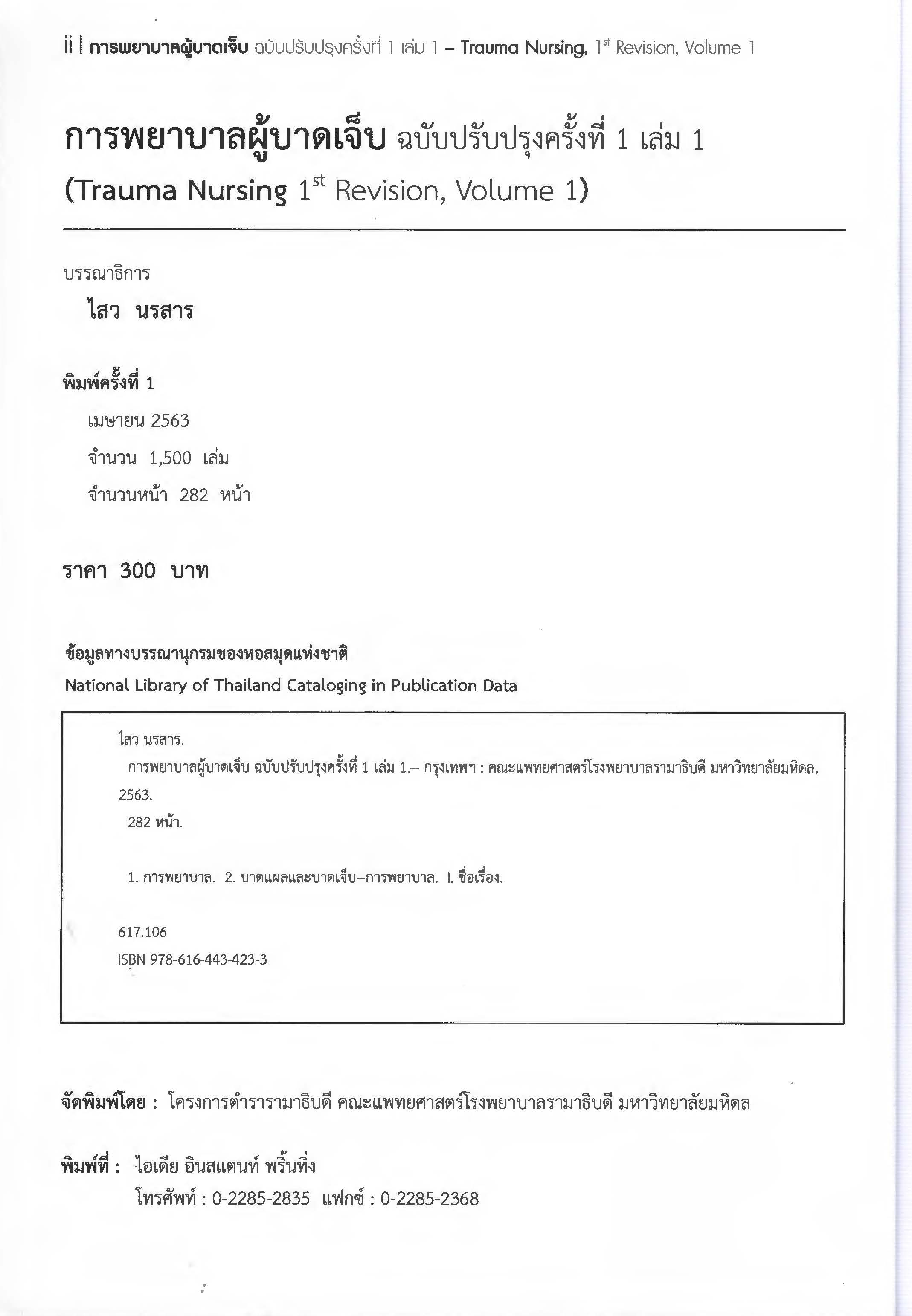การพยาบาลผู้บาดเจ็บ เล่ม 1 =Trauma nursing